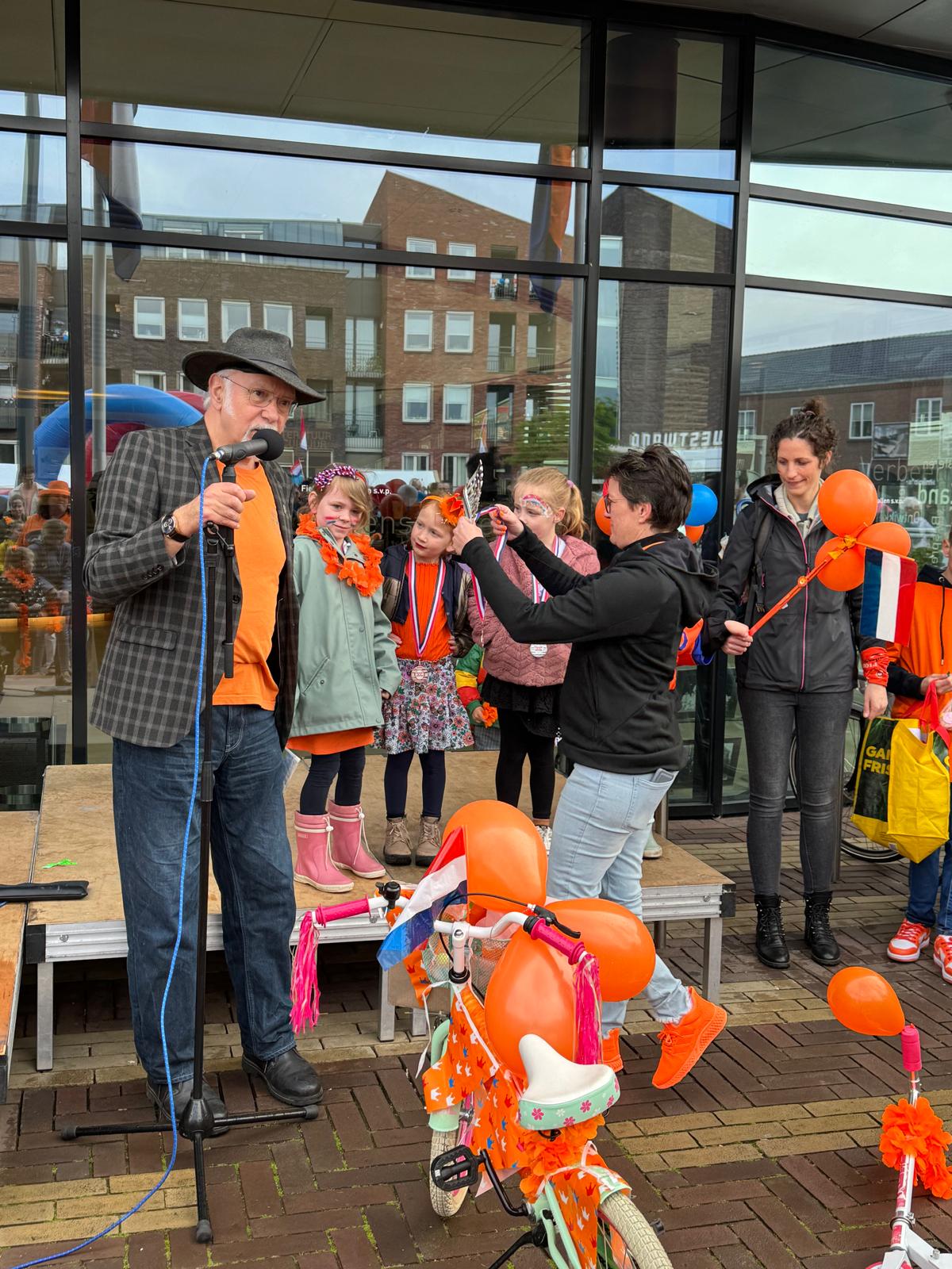 Koninklijke opening met de burgemeester, vlaghijsen en wordt het Wilhelmus gespeeld door Bodhin Swart op saxofoon van muziekschool De Heraut – een plechtig begin van een feestelijke dag!
